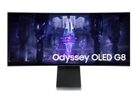 Model Odyssey OLED G8 G85SB | 34" | Gaming/Smart/Curved/21 : 9 | Panel OLED | Resolution 3440x1440 | Form factor 21:9 | Refresh rate 175 Hz | Brightness 250 | Contrast 1000000:1 | Response time 0.1 ms | Horizontal 178 degrees | Vertical 178 degrees | 1xHDMI Micro (D) | 1xMini DisplayPort | 2xUSB-C | Wireless LAN | Bluetooth | Speakers | Height adjustable | Tilt | PSU External | 100 mm x 100 mm | Colour Silver