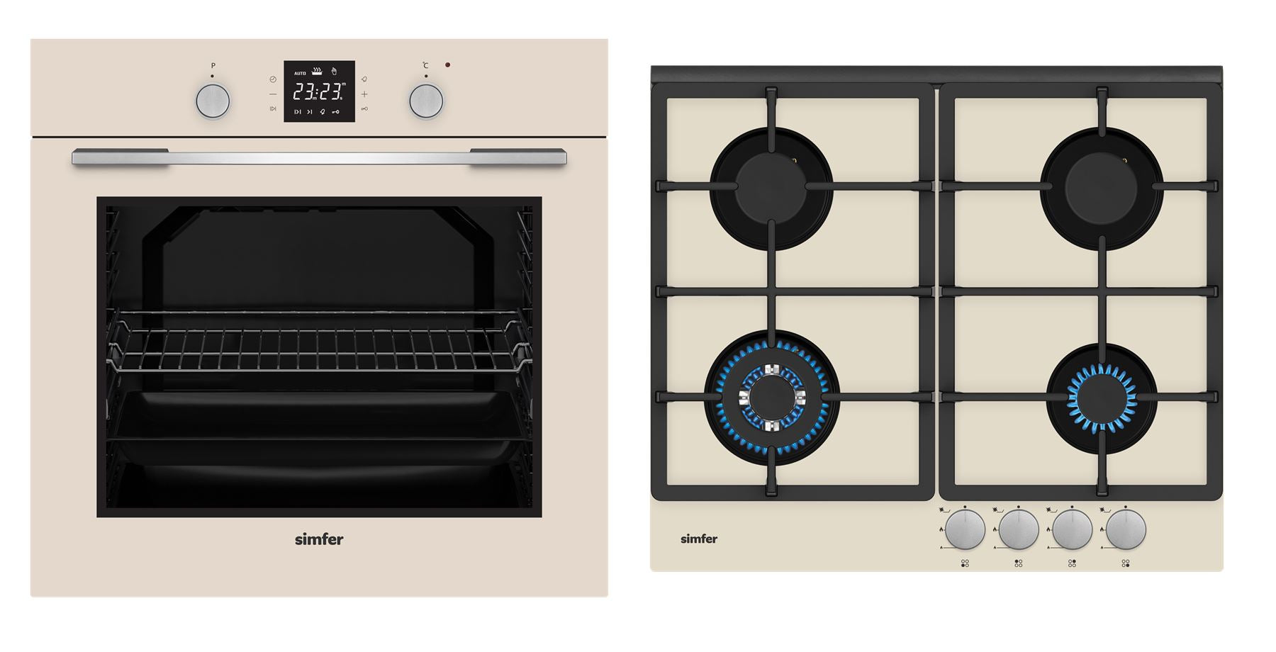 Simfer Oven & Hob H6403TGWBJ_8408EERBJ 80 L, Multifunctional, Touch/Pop-up knobs, Height 60 cm, Width 60 cm, Beige